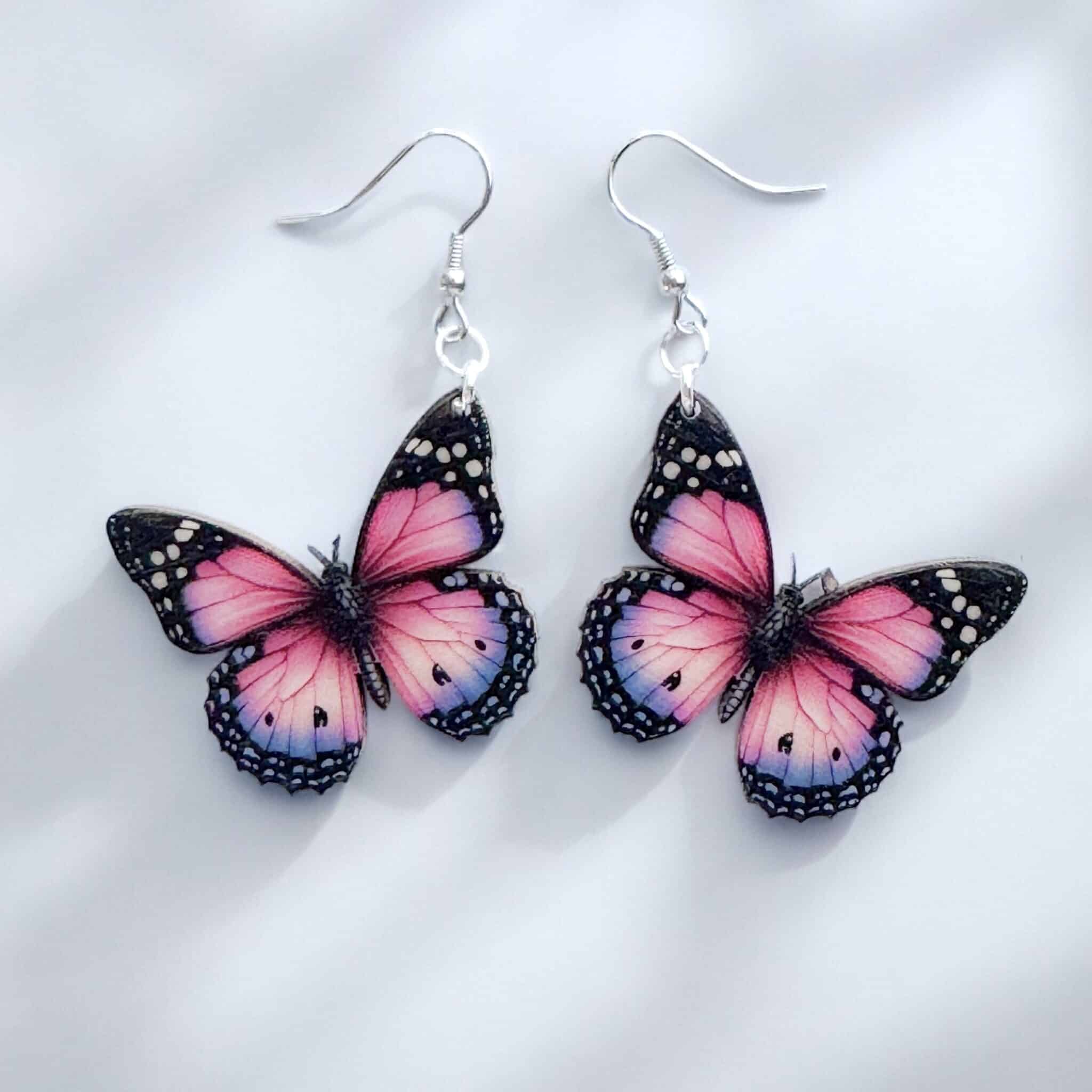 Perhoset korvakorut sopivat täydellisesti kesäiseen tyyliin. Perhosen leveys noin noin 3 cm. Korvakorut ovat samanlaiset molemmilta puolilta.